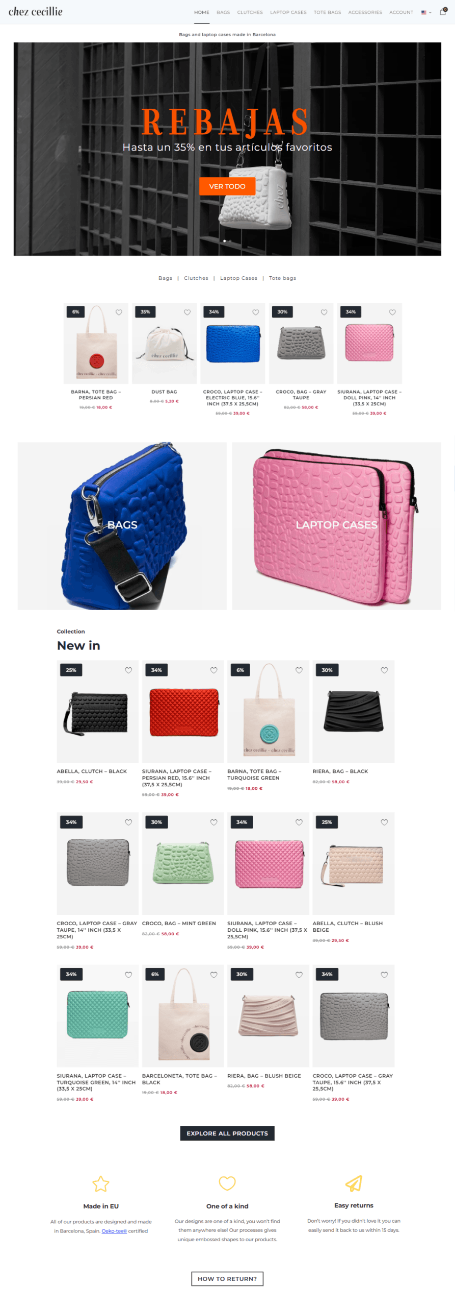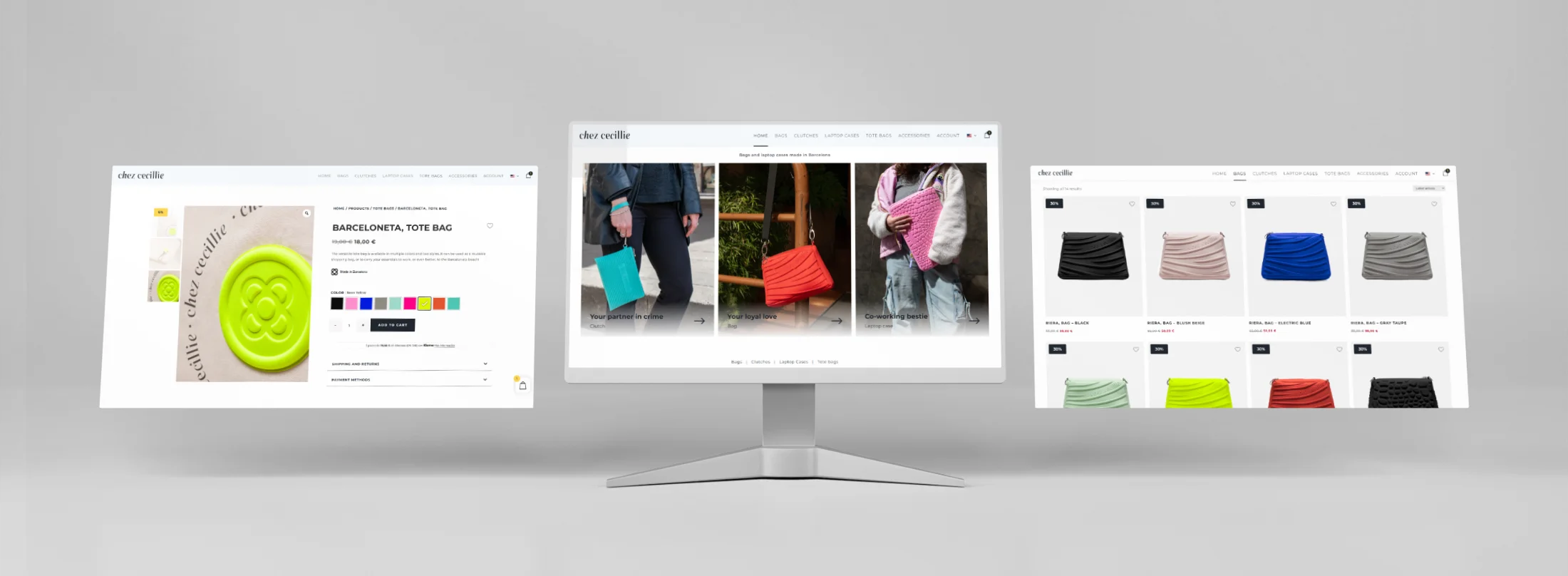 Chez Cecillie is an upcoming fashion accessories brand based in Barcelona, Spain. They design and manufacture their products locally but don’t have a physicall space. They needed help creating their branding and online store.