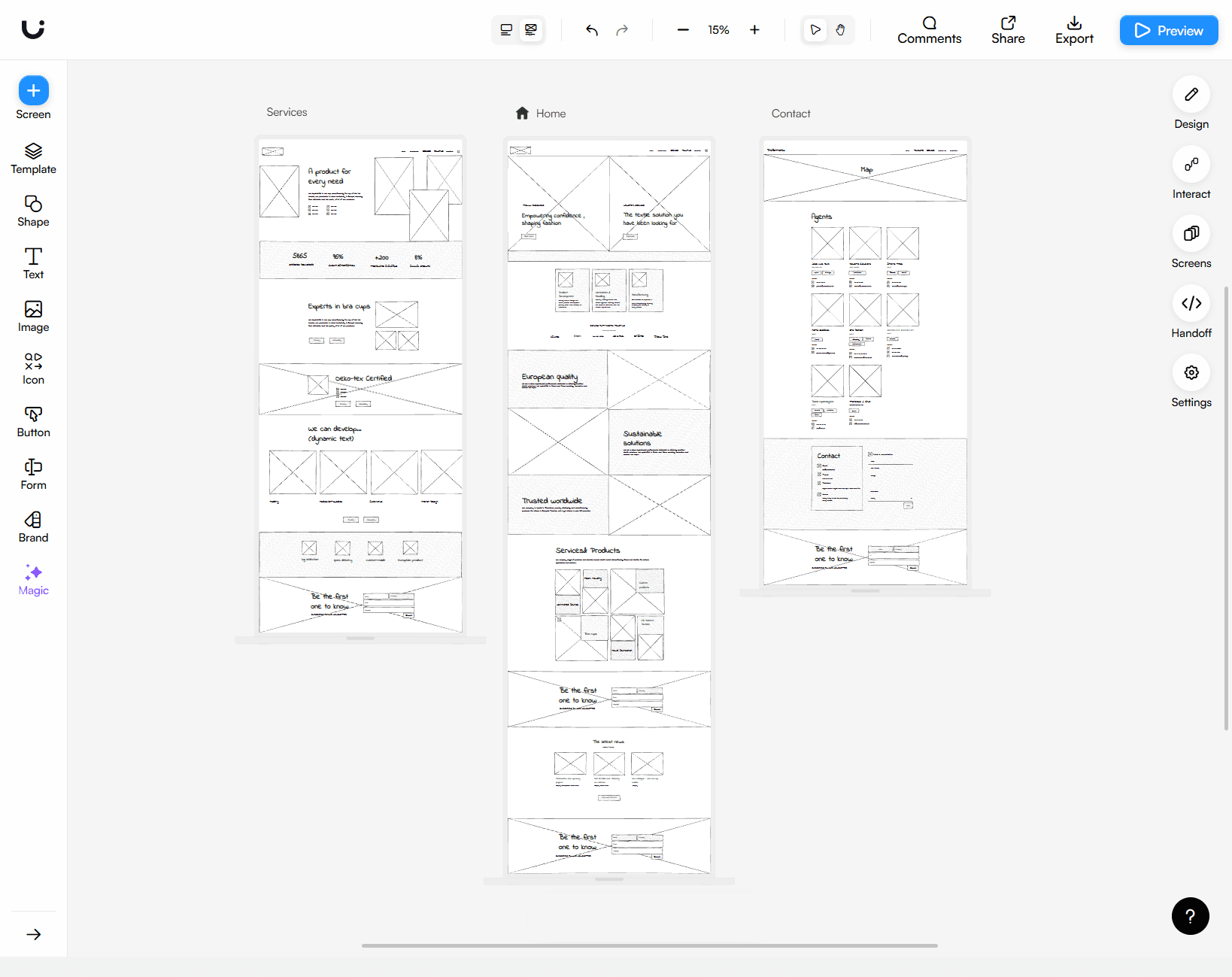 Low fidelity wireframes - Preformatex websiteMade with: Uizard
